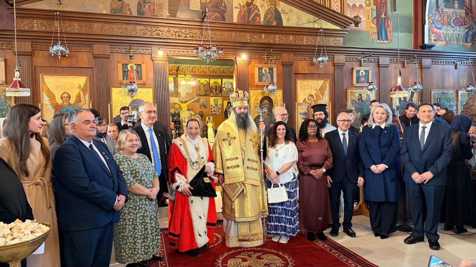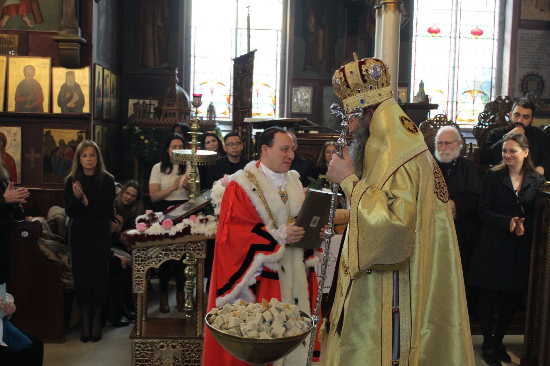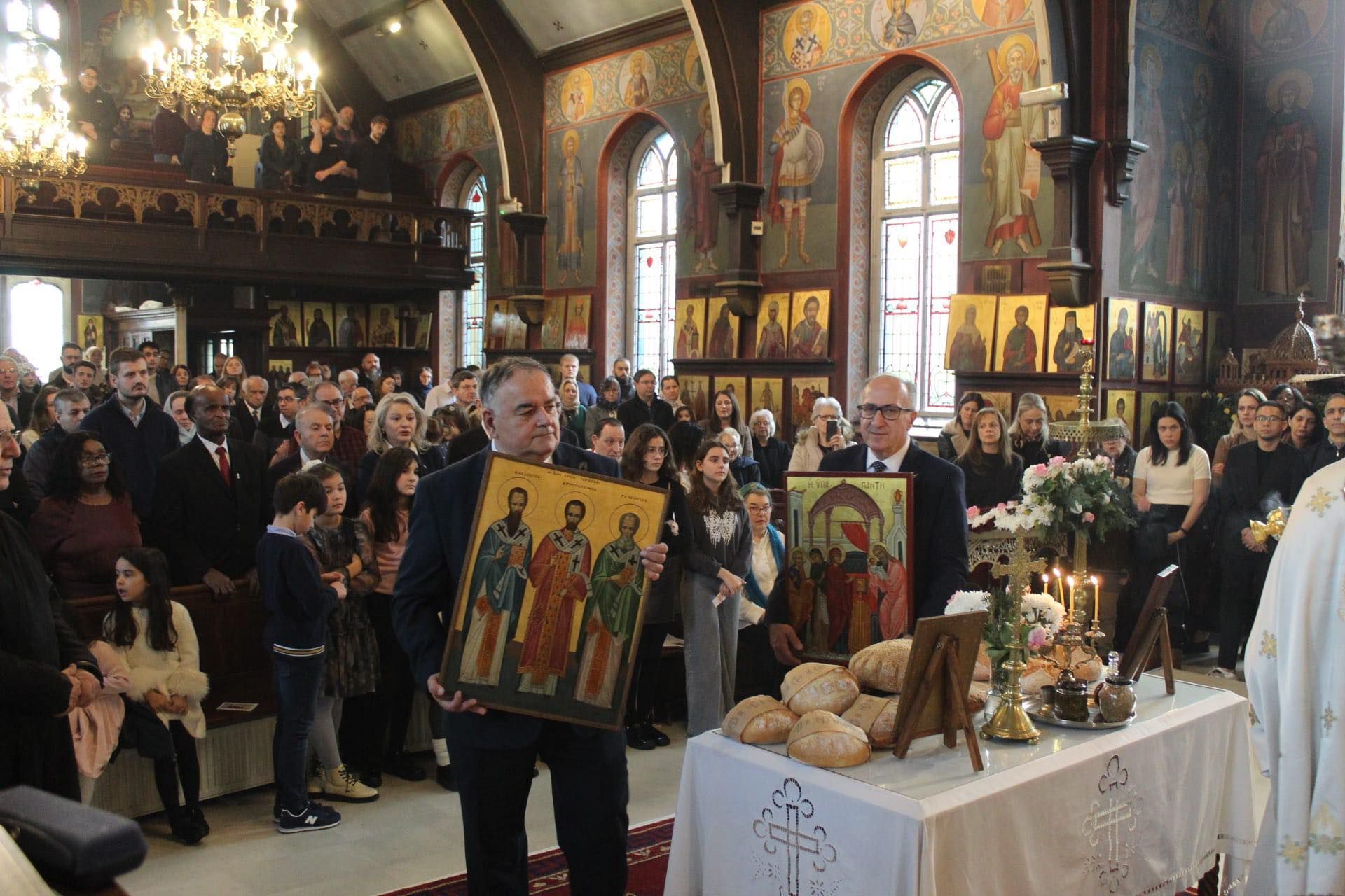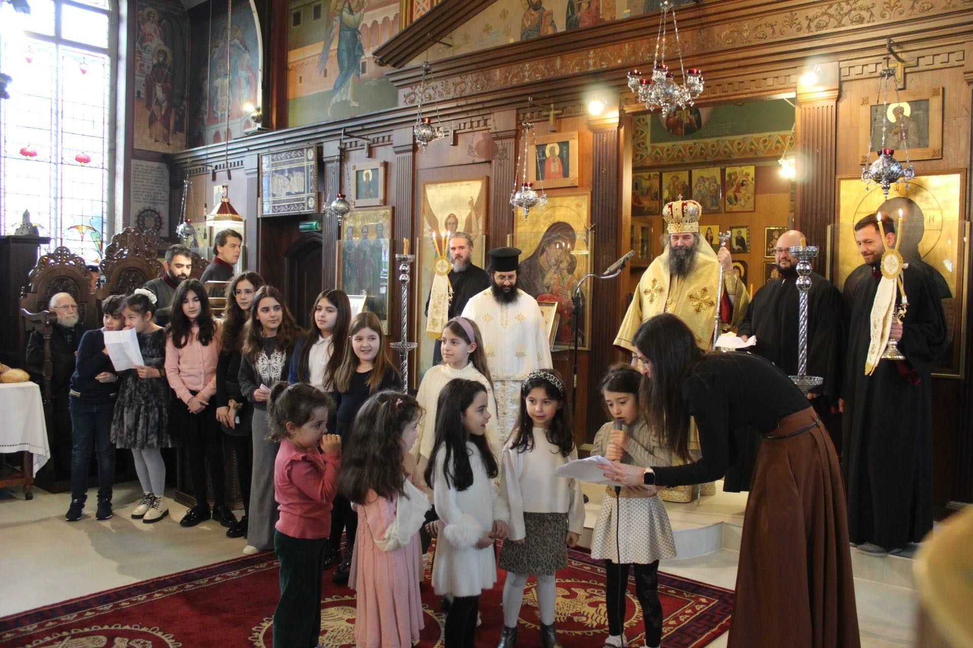 Μετά τη Θεία Λειτουργία, τα παιδιά του Ελληνικού Σχολείου μας ενθουσίασαν όλους με την παραδοσιακή παρουσίαση της Ημέρας των Τριών Ιεραρχών, γεμίζοντας την εκκλησία με υπερηφάνεια και χαρά. Σε αρκετούς από τους τιμώμενους καλεσμένους μας προσφέρθηκε επίσης ένα ειδικό αναμνηστικό — μια εικόνα των Τριών Ιεραρχών — σε ανάμνηση της περίστασης.