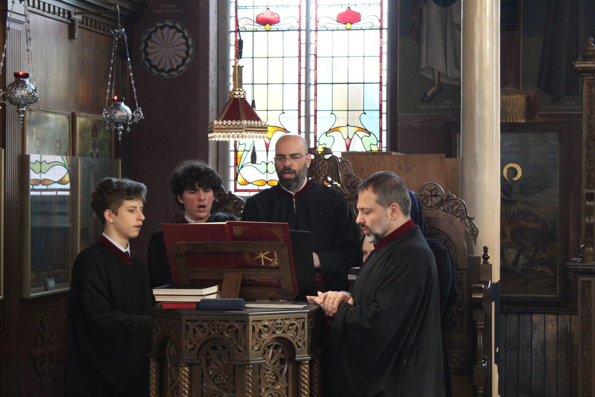Την λειτουργία τέλεσε με βυζαντινή με μεγαλοπρέπεια ο Θεοφιλέστατος Επίσκοπος Ιλίου κ. Ραφαήλ, ο οποίος μας τίμησε με την παρουσία και τις ευλογίες του. Ευχαριστούμε επίσης θερμά τους αφοσιωμένους ψάλτες της ενορίας μας, των οποίων η απέριττη ψαλμώδηση βοήθησε στην ανύψωση του προσευχητικού πνεύματος της εορτής. Με χαρά σηματοδοτήσαμε επίσης μια ξεχωριστή στιγμή για την εκκλησιαστική χορωδία μας. Με την ευλογία του Σεβασμιωτάτου Αρχιεπισκόπου μας κ.κ. Νικήτα, ο Θεοφιλέστατος Επίσκοπος Ραφαήλ χειροθέτησε αναγνώστες τρία μέλη της χορωδίας. Τα θερμά μας συγχαρητήρια στους κ.κ. Γεώργιο Πολίτη, Αλέξιο Πετράκη (15) και Γεώργιο Παπαβασιλείου (13).