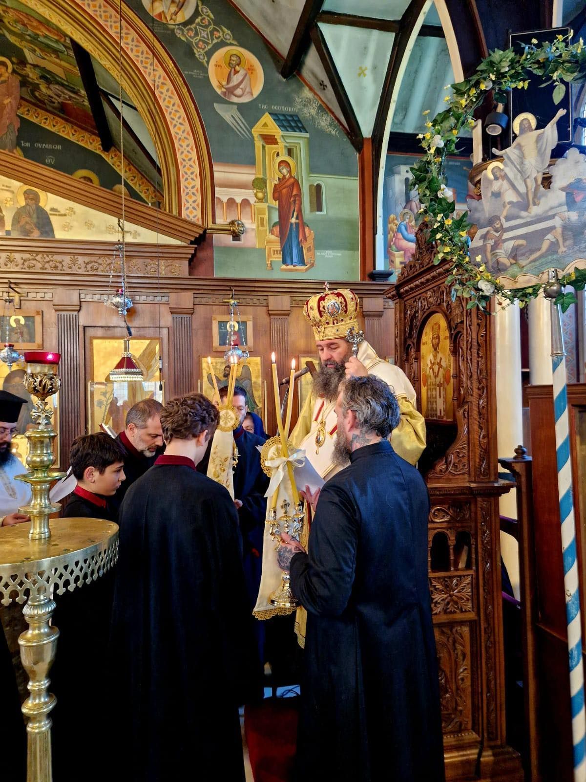 The service was beautifully presided over by His Grace Bishop Raphael of Ilion, who honoured us with his presence and blessings. We also offer our sincere thanks to our dedicated parish chanters, whose reverent hymnology helped uplift the prayerful spirit of the celebration. We were also pleased to mark a special moment for our choir. With the blessing of His Eminence Archbishop Nikitas, His Grace Bishop Raphael appointed three of our choir members to the rank of “Reader.” Our warm congratulations to Mr Georgios Politis, Alexios Petrakis (15), and Georgios Papavasileiou (13).
