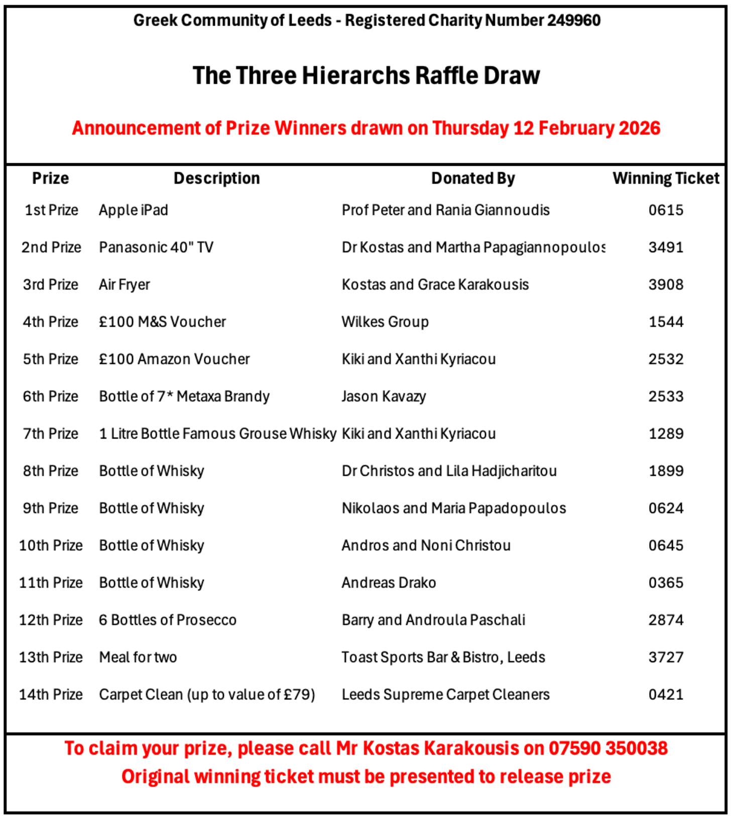 Our guests were hosted on behalf of the Greek Orthodox Community of Leeds by Father Michael (Priest in Charge); Mr Kostas Karakousis (Chairman); Mr Barry Paschali (Chair of the Trustees); and Dr Anna Trakoli (Chair of the Greek School).